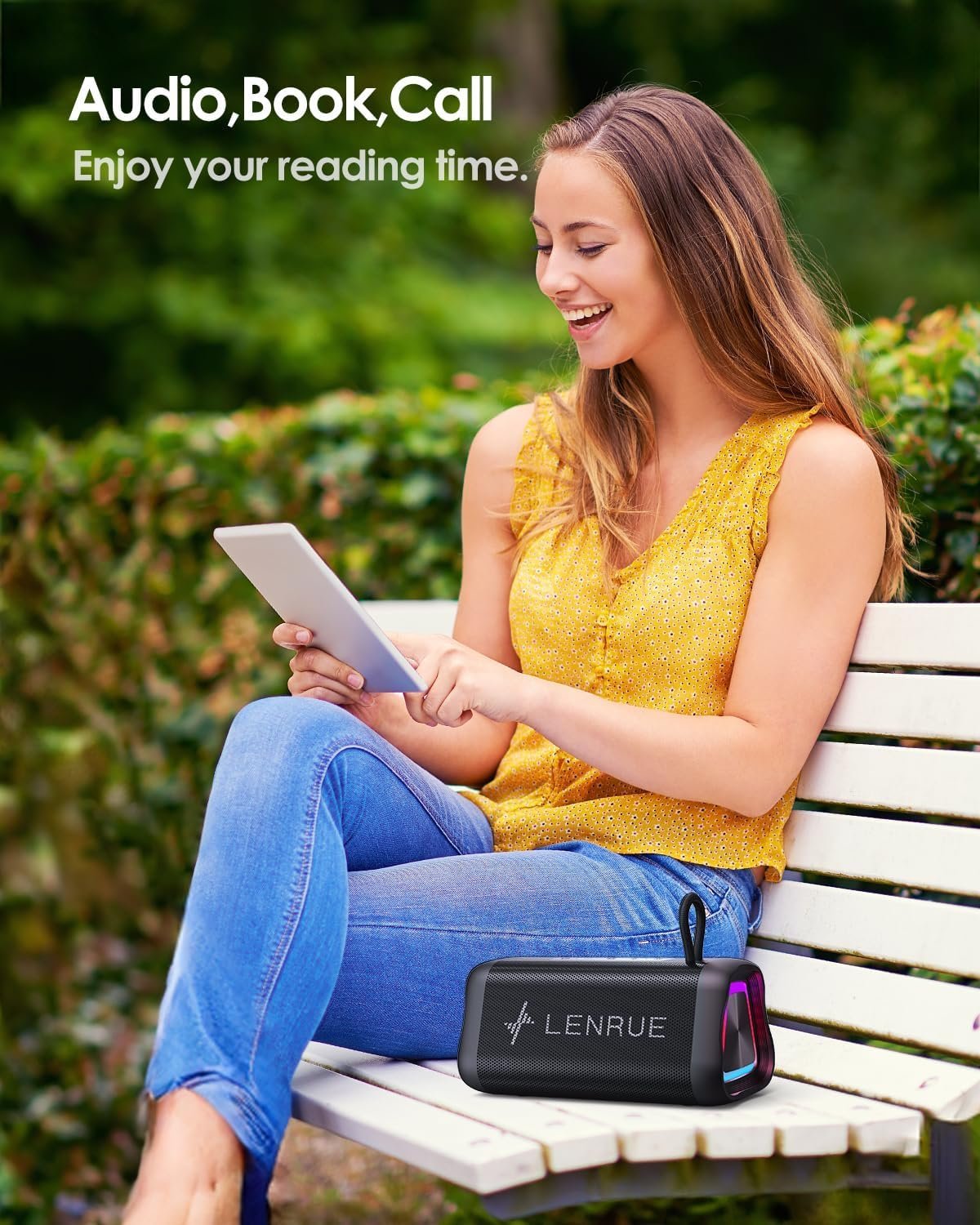 LENRUE Portable Bluetooth Speaker with LED Lights, IPX5 Waterproof Wireless Speaker with 360° Stereo Sound for Outdoors & Home Use