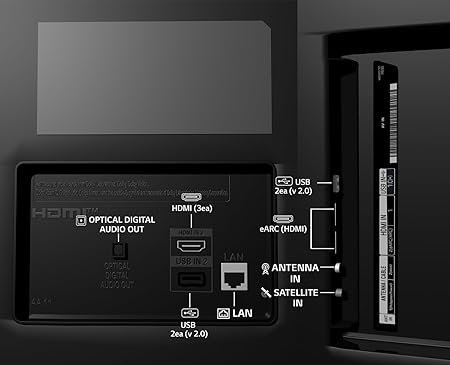 • Connectivity: Wi-Fi (Built-in) | 3 HDMI ports to connect set top box, Blu Ray players, gaming console | 2 USB ports to connect hard drives and other USB devices | eARC | Bluetooth 5.0 | Optical | Ethernet