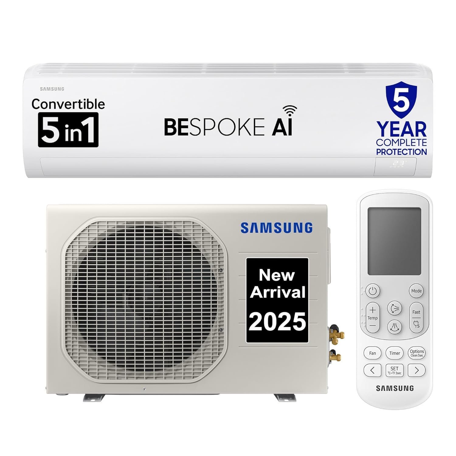 Key Features: BESPOKE AI, 30% Additional Energy Savings, 5 Step Convertible, 4 Way Swing, Wi-Fi, Voice Control with Alexa, Google & Bixby, SmartThings app, Auto Error Diagnosis, 3 Step Auto Clean, Digital Inverter Technology, Durafin Ultra, Triple Protection Plus, Copper Anti-Bacterial Filter, Coated Copper tubes