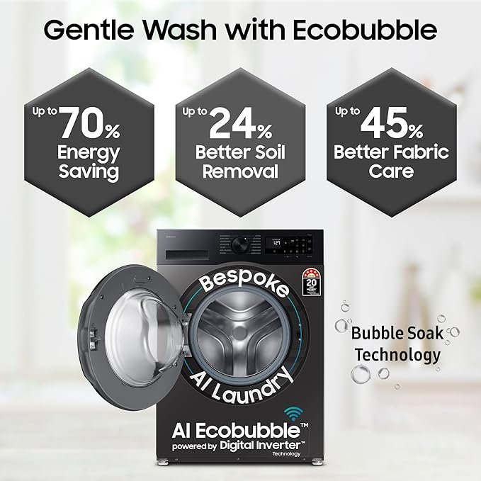 • Fully-automatic front load washing machine with AI Ecobubble and Wi-Fi Technology : Best Wash Quality, Energy Savings (up to 70%) and Water efficient